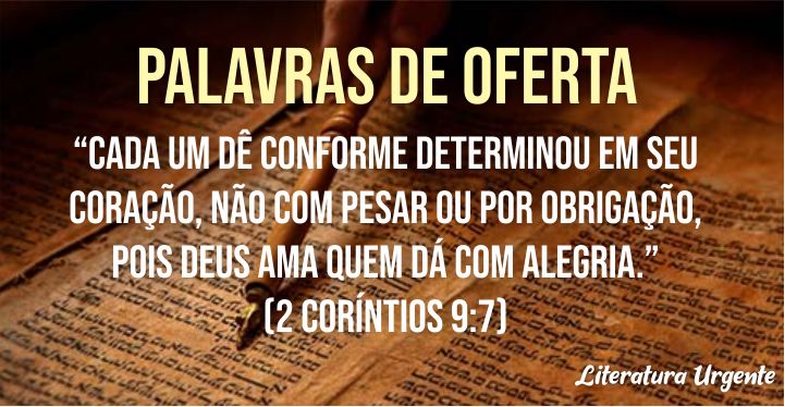 “Cada um dê conforme determinou em seu coração, não com pesar ou por obrigação, pois Deus ama quem dá com alegria.” (2 Coríntios 9:7)